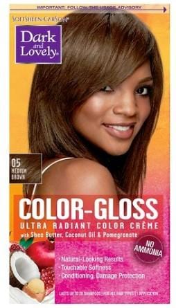 Dark and Lovely Color Gloss 05 Medium Brown: with Shea Butter, Coconut oil, pemegranate.Our 1st no ammonia, shine-infusing conditioning haircolor gives... Read more