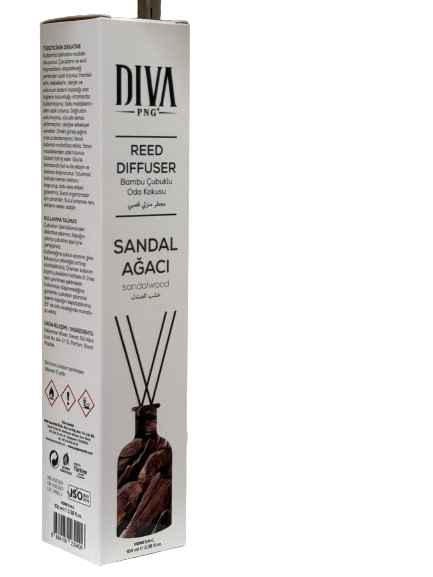 The packaging of the Diver Reed Diffuser Sandal Ağacı is often designed to reflect the premium nature of the product, with attention to detail in both the materials and the overall presentation, making it a stylish addition to any home décor.