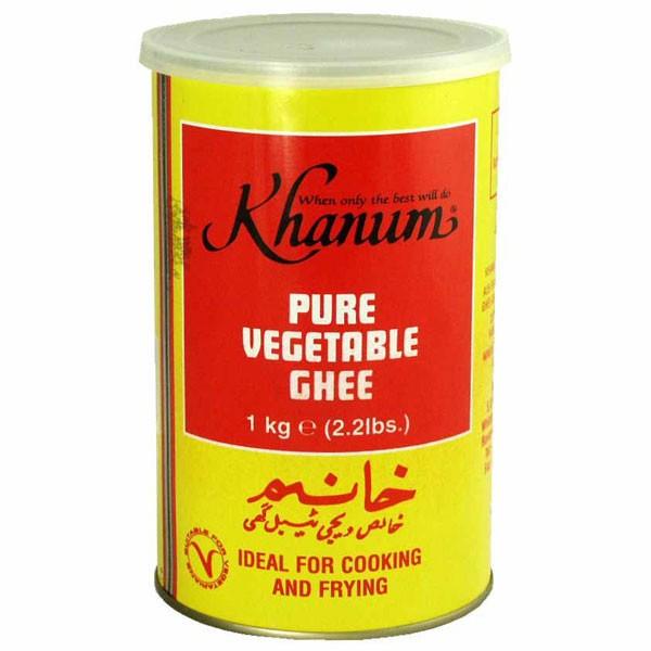 Khanum Pure Vegetable Ghee 1 kg: Khanum Pure Vegetable Ghee is made from non-hydrogenated palm oil. Ingredients: Vegetable Oils, Natural Colouring E160(a), Flavouring. Read more