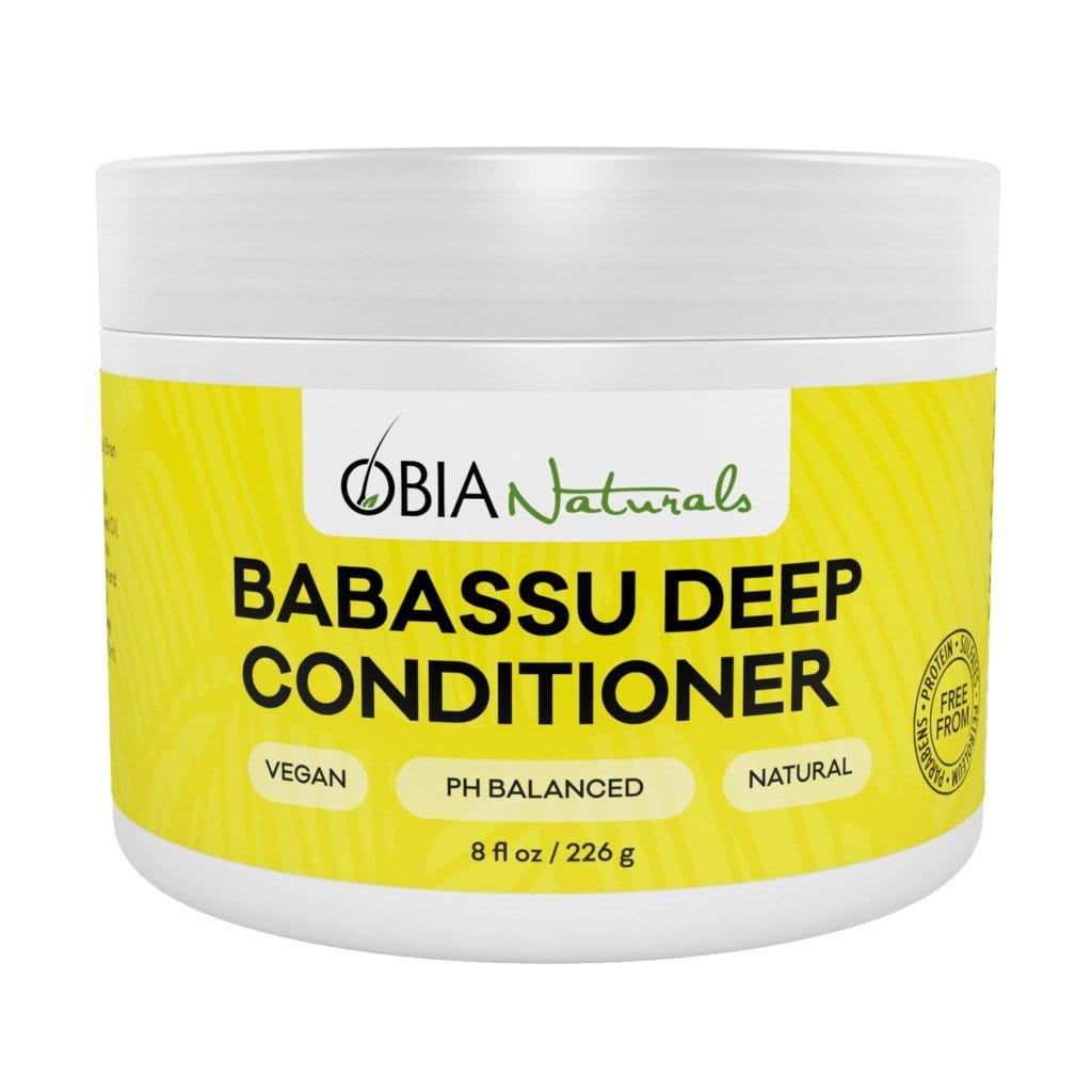OBIA NATURALS BABASSU DEEP CONDITIONER 226 G: immerse your curls and kinks in this deeply penetrating, fortifying protein-free treatment that repairs and reconstructs all hair textures and hair types. Strand-strengthening Babassu oil will nourish, repair elasticity, soften and add shine to your hair. Our moisturizing blend of Avocado OilRosemary Essential Oil and Panthenol will repair damage and hydrate your hair.