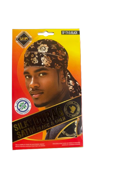 Saifi Silky Durag Sakin Black and Gold SF174-G-Black