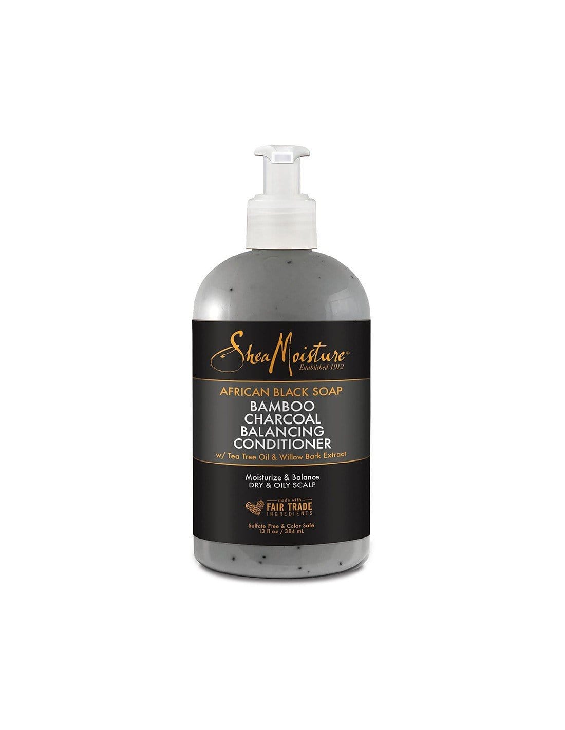 Shea Moisture African Black Charcoal Conditioner 384 ml: instantly soften, detangle and condition with this moisturizing formula that soothes the scalp without weighing hair down. African Black Soap, Bamboo Charcoal, Tea Tree Oil, and Willow Bark Extract combine in a caring formula that delivers scalp nourishing benefits, and balanced hydration to smooth hair. Leaves hair soft and manageable.
