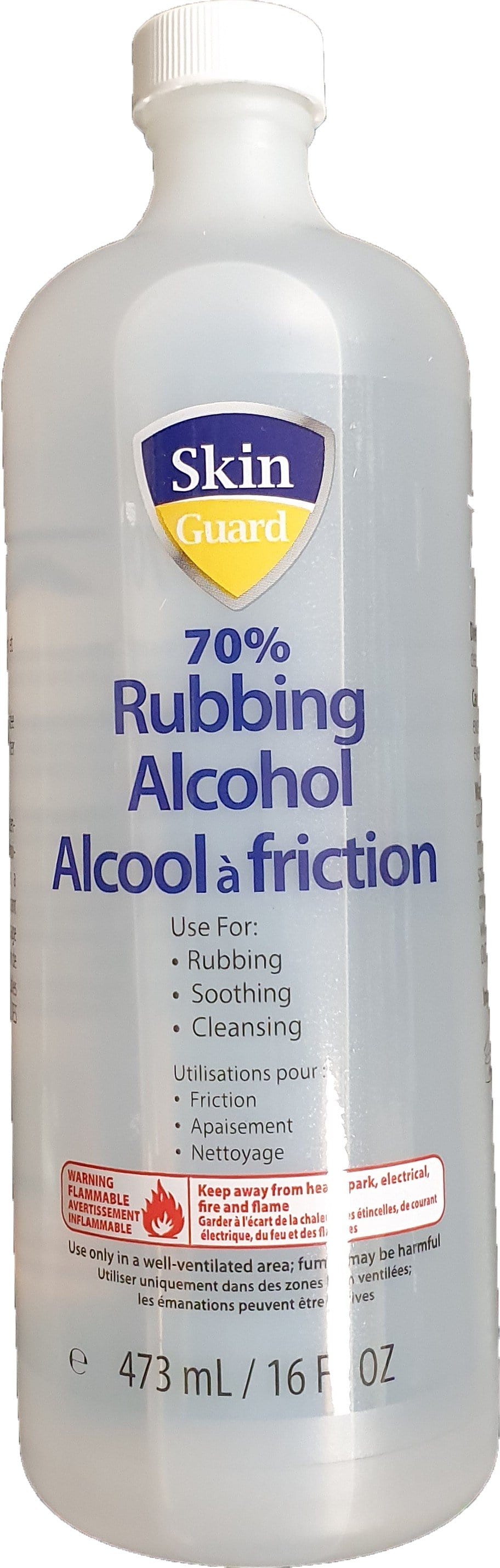 Skin Guard 70% Rubbing Alcohol 473 ml: for rubbing, soothing and cleansing. Ingredients: Isopropyl Alcohol, Aqua. Read more