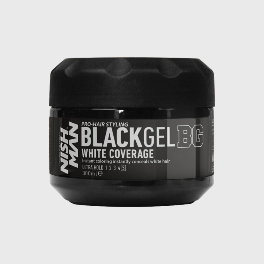 NISHMAN BLACK GEL BG WHITE COVERAGE 300 ML: ultra hold instantly conceals white hair. With strong hold gives volume and... Lees meer